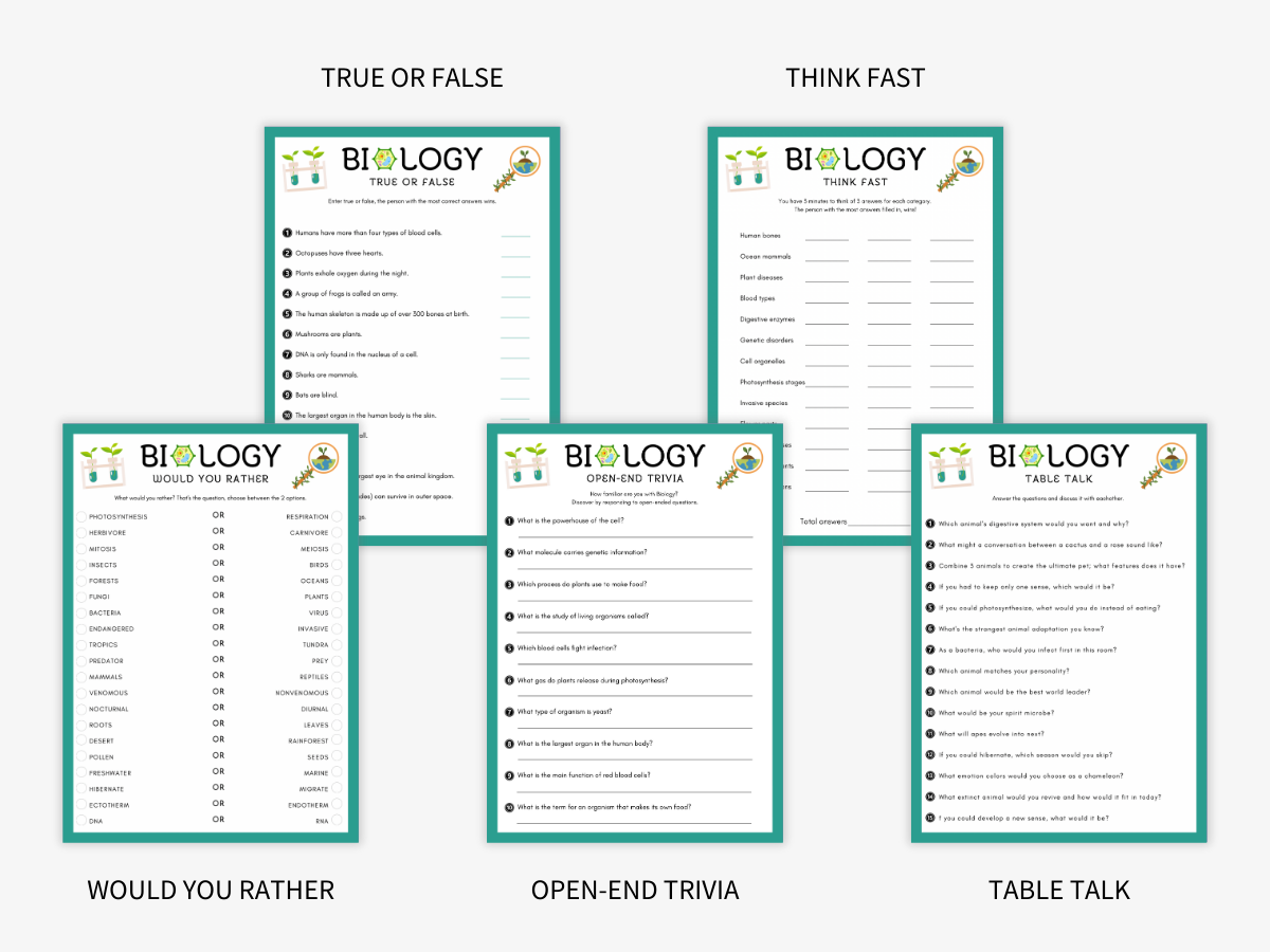 Turn biology into an exciting game with the Biology 10 Games Bundle Printable. Whether for a classroom, homeschool lesson, science club, or trivia night, these games make learning fun, interactive, and memorable.